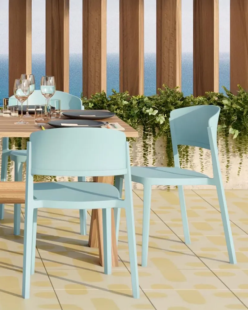 La sedia Abuela si distingue per le sue forme morbide e i dettagli curati. Realizzata in tecnopolimero, è impilabile, leggera e pensata per ambienti esterni e interni eleganti e contemporanei. Ideale per chi cerca funzionalità con uno stile raffinato.