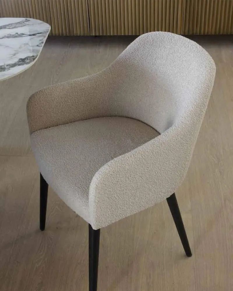 La poltroncina Aurora si distingue per la sua versatilità estetica e funzionale. Disponibile in velluto per un effetto elegante, in ecopelle per maggiore praticità o in tessuto bouclè per un look più morbido e accogliente, si adatta perfettamente a diversi ambienti. Ideale per living, spazi hospitality o zone lettura dal carattere ricercato.