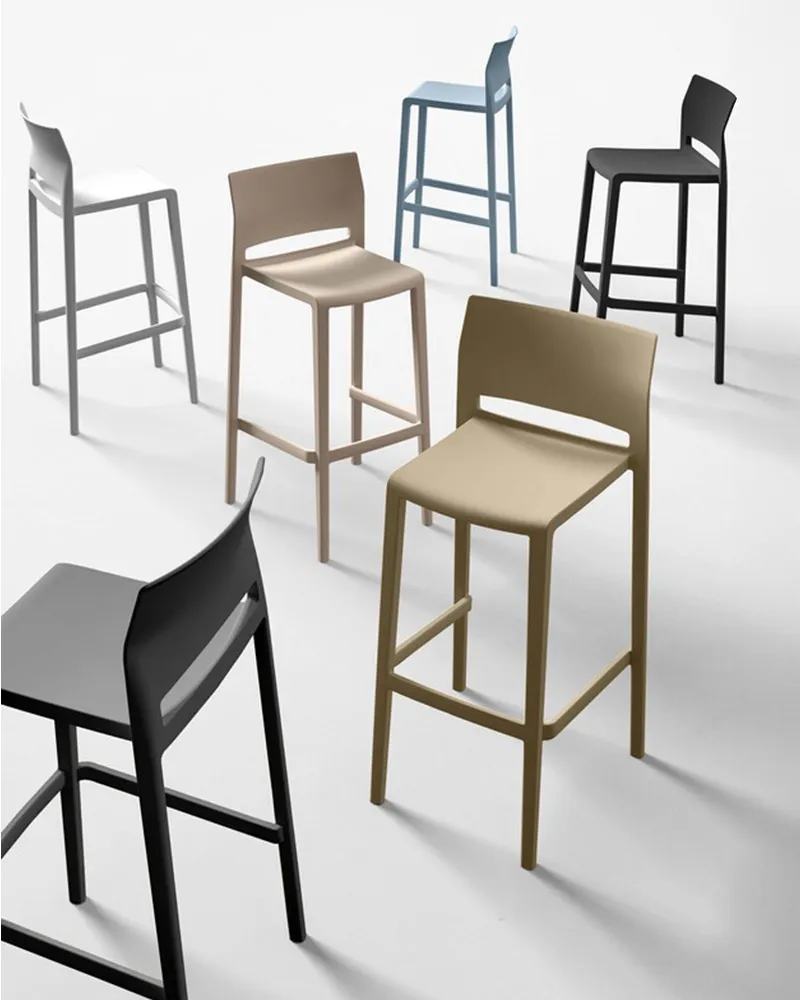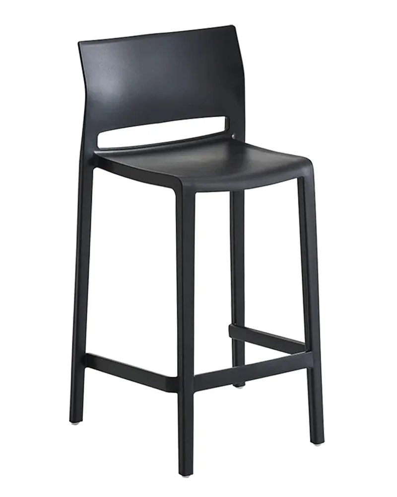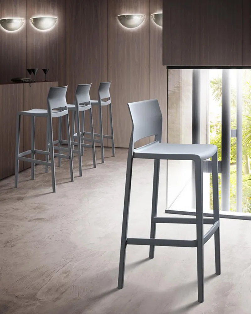 Bakhita è un’elegante sgabello monoblocco in tecnopolimero con poggiapiedi. Impilabile, robusto e resistente, è disponibile in diversi colori e in due altezze. Si adatta a diversi stili, prestandosi ad ambienti Horeca e Hotellerie sia indoor che outdoor.