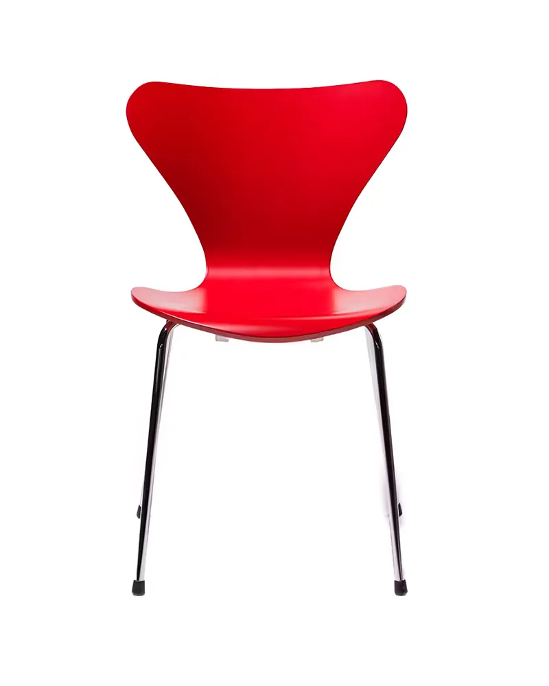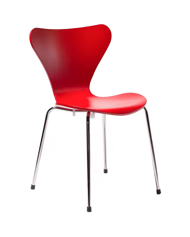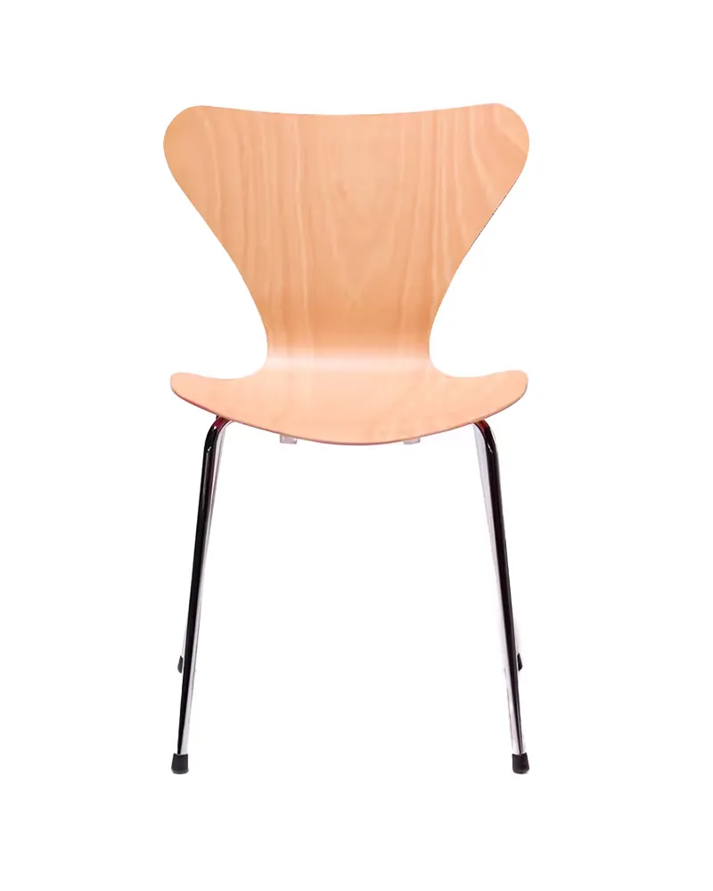 Ispirata alla celebre Serie 7 di Arne Jacobsen, questa seduta reinterpreta un’icona del design in chiave contract. La struttura in tubolare d’acciaio cromato sostiene una scocca in lamellare di faggio curvato, sinuosa ed ergonomica. Impilabile e raffinata, è ideale per ambienti che desiderano un tocco di classicità senza rinunciare alla funzionalità.
