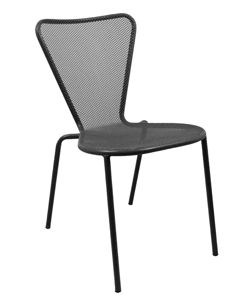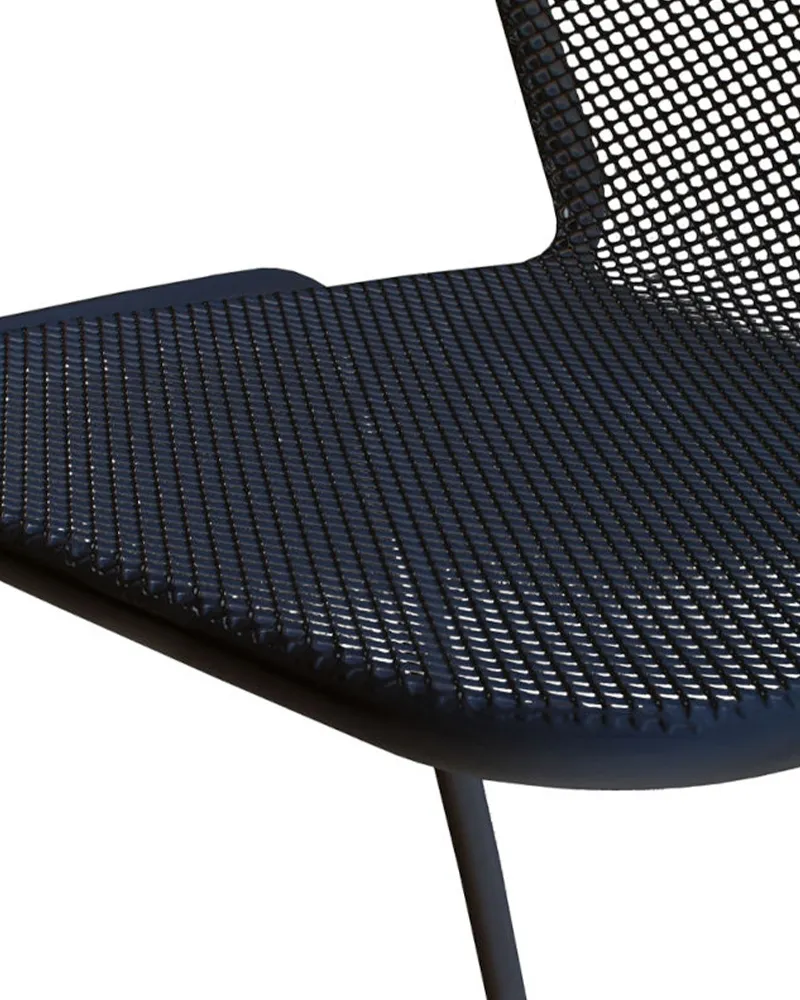 Dal design essenziale e pratico, la sedia blue è realizzata interamente in metallo verniciato per uso sia esterno che interno. La seduta e lo schienale traforati formano un unico elemento, garantendo leggerezza e traspirabilità. Robusta, impilabile e facile da pulire, è ideale per terrazze, dehors e contesti contract.