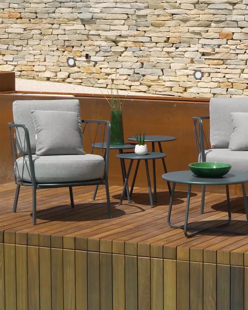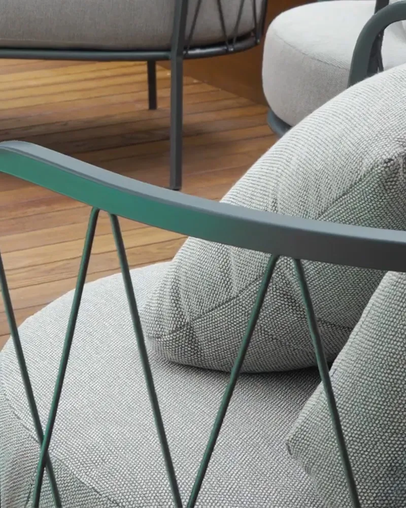 La poltrona Daisy si distingue per linee morbide e sinuose, sostenute da una struttura in metallo laccato con trattamento di zincatura anticorrosione e verniciatura Qualicoat. La cuscineria in tessuto acrilico con finitura Teflon è sfoderabile, resistente a muffa e macchie, e progettata per l’uso outdoor professionale. È perfetta per zone outdoor: lounge, terrazze e aree relax.