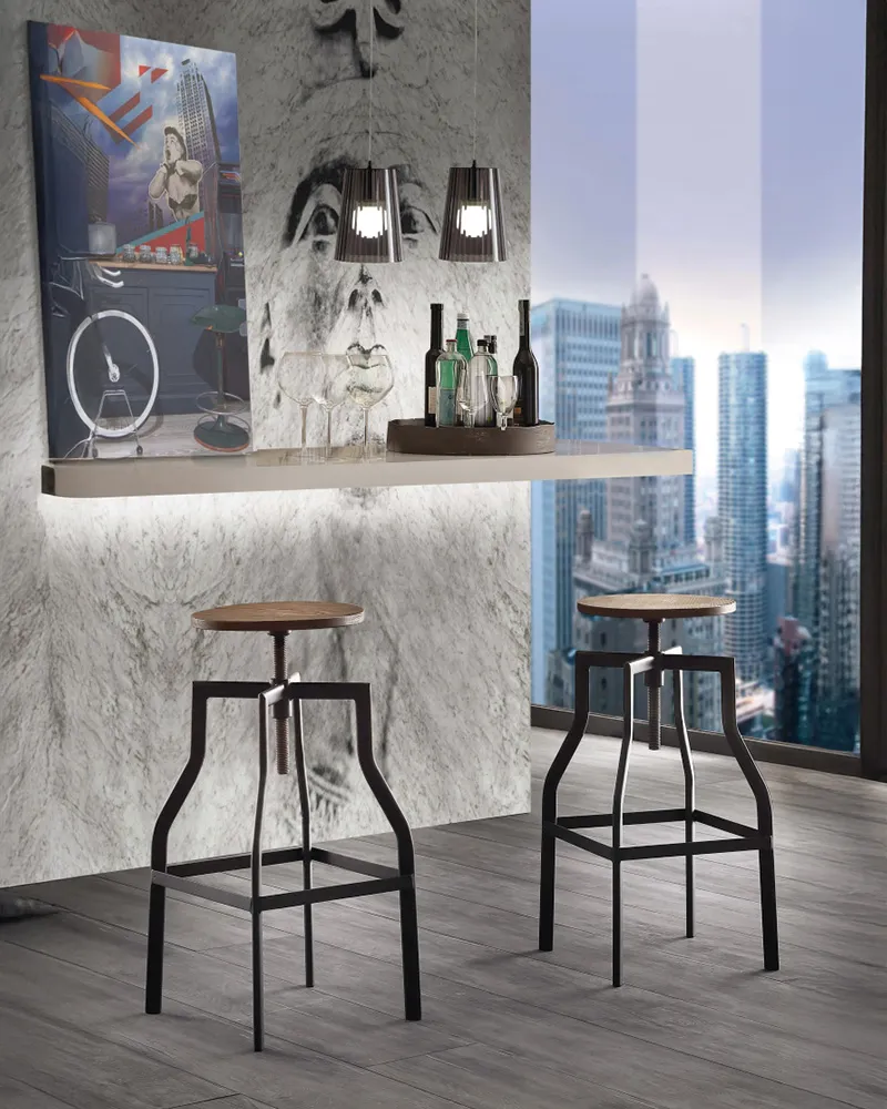 Lo sgabello Gliss rappresenta una sintesi perfetta tra robustezza industriale e calore materico. La sua struttura in metallo verniciato nero lo rende solido e visivamente moderno, mentre il sedile in legno noce industriale aggiunge un tocco naturale e sofisticato. È ideale per ambienti di ristorazione o accoglienza dove si vuole unire funzionalità ed estetica in uno stile contemporaneo.
