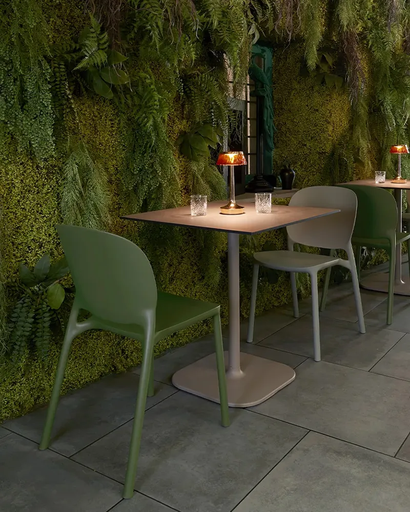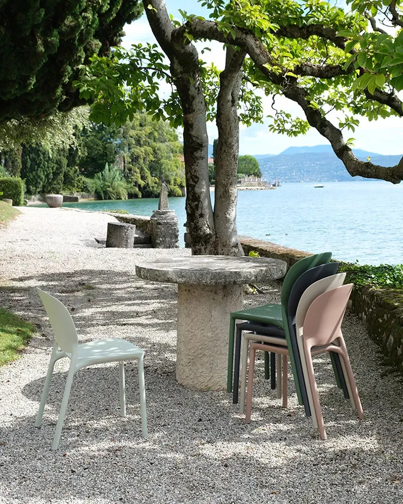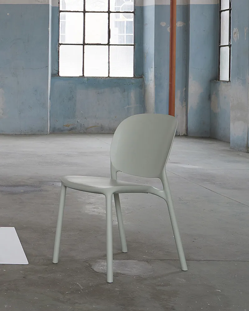 La sedia Hug è prodotta in tecnopolimero rigenerato post-consumo. Il design morbido e arrotondato la rendono una scelta attuale per ambienti contract e residenziali indoor. È impilabile e disponibile in diversi colori.