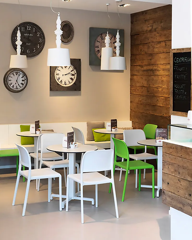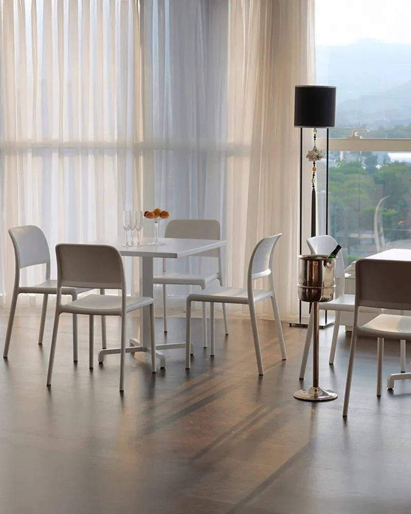 Monoscocca in tecnopolimero, trattata anti-UV e con finitura opaca. La sedia Ines è impilabile, leggera e resistente, perfetta per spazi all’aperto o interni dinamici. Le linee pulite e continue creano un design armonioso e contemporaneo. Dotata di piedini antiscivolo.