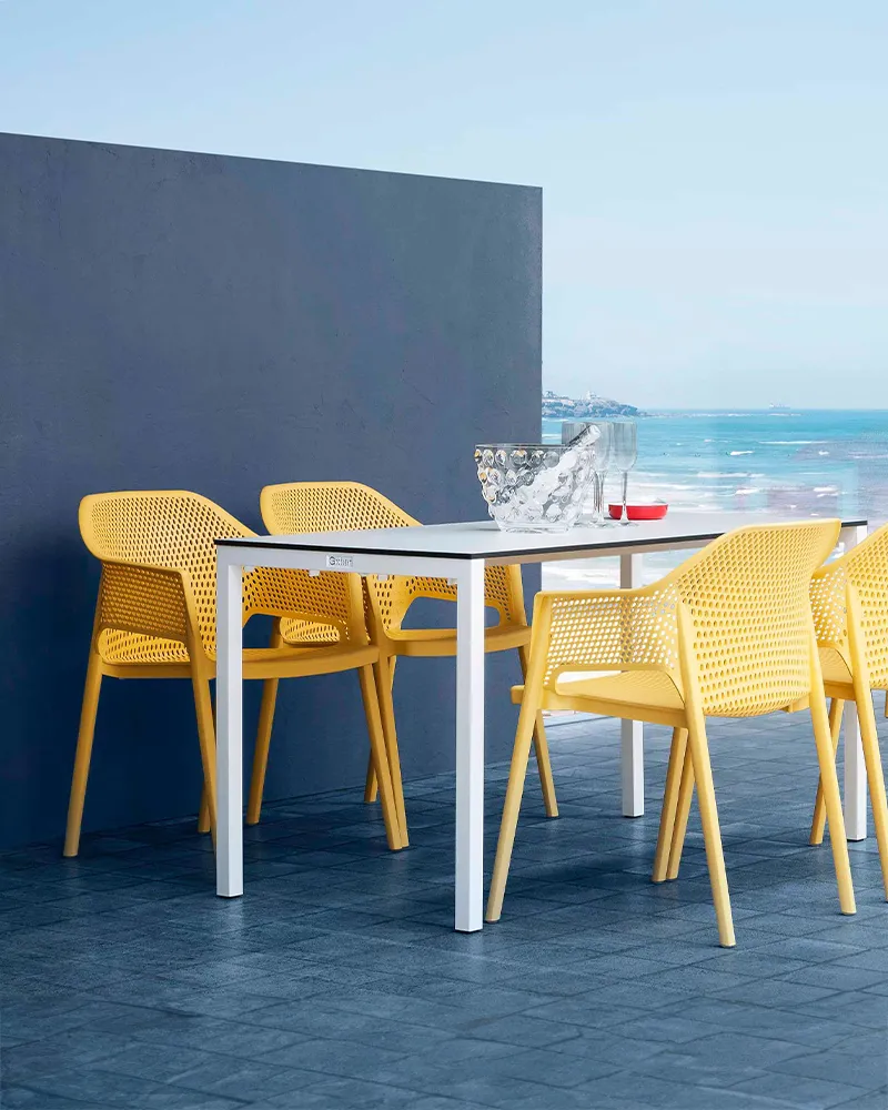 Linee moderne e materiali resistenti si incontrano nella sedia Minush, realizzata in tecnopolimero. Impilabile, ampia e leggera, è ideale per l’outdoor contemporaneo, grazie alla sua forma accogliente e ai colori vivaci. Dona personalità a ogni spazio interno ed esterno.
