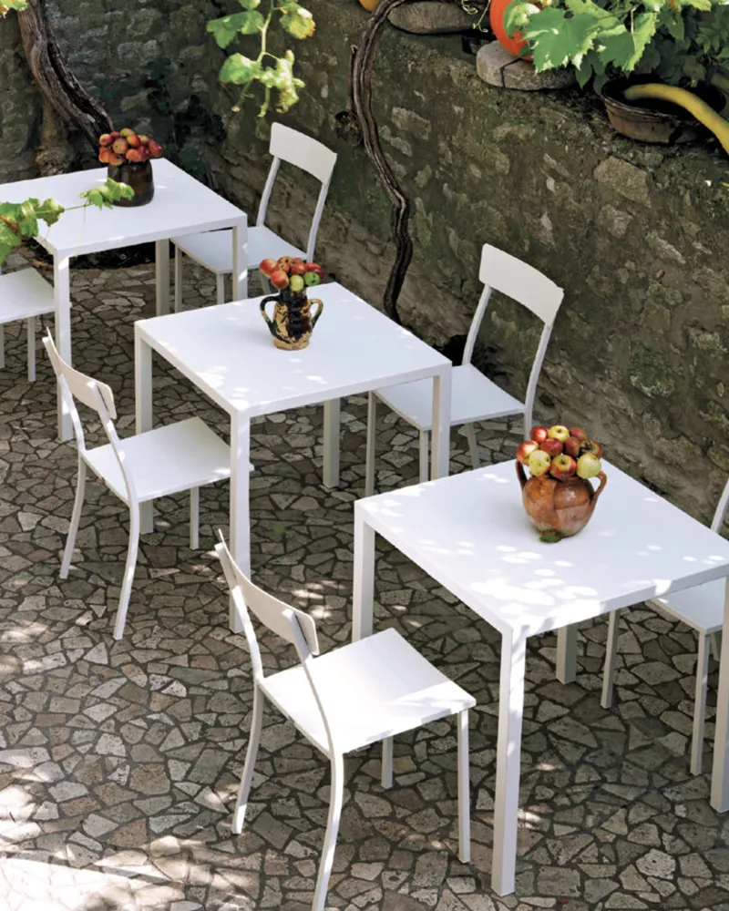 Robusta e funzionale, la sedia Mogan è realizzata in metallo zincato e verniciato a polvere, ideale per ambienti esterni e utilizzo professionale. Impilabile e facile da mantenere, offre una soluzione pratica per arredi contract dal design sobrio e contemporaneo.
