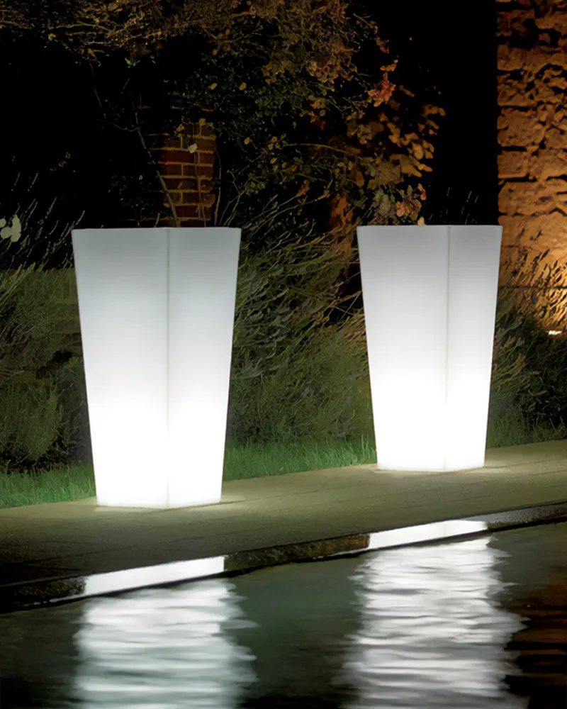 Notte interpreta l’idea di eleganza discreta con una lampada bassa a colonna in tecnopolimero, perfetta per creare un’atmosfera raffinata e accogliente senza appesantire l’ambiente. La sua altezza più contenuta la rende versatile: adatta a corner lounge, angoli relax o come luce d’ambiente in ristoranti e spazi hospitality. L’illuminazione interna diffonde una luce morbida e uniforme, ideale per valorizzare arredi e tessuti e creare un effetto suggestivo e rilassante.
