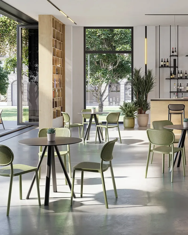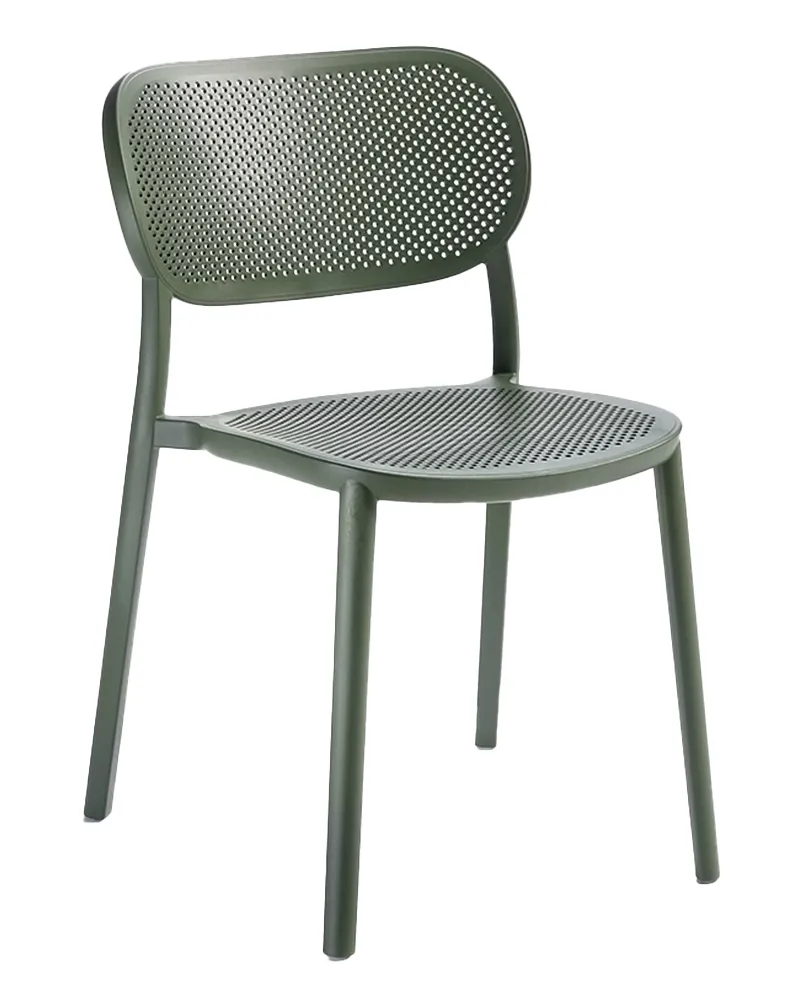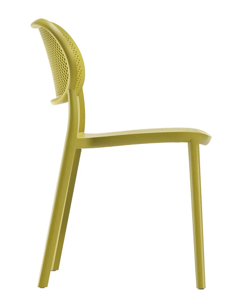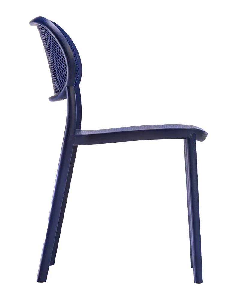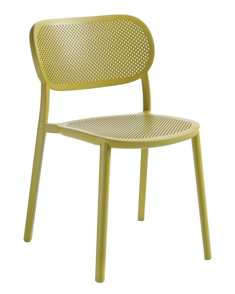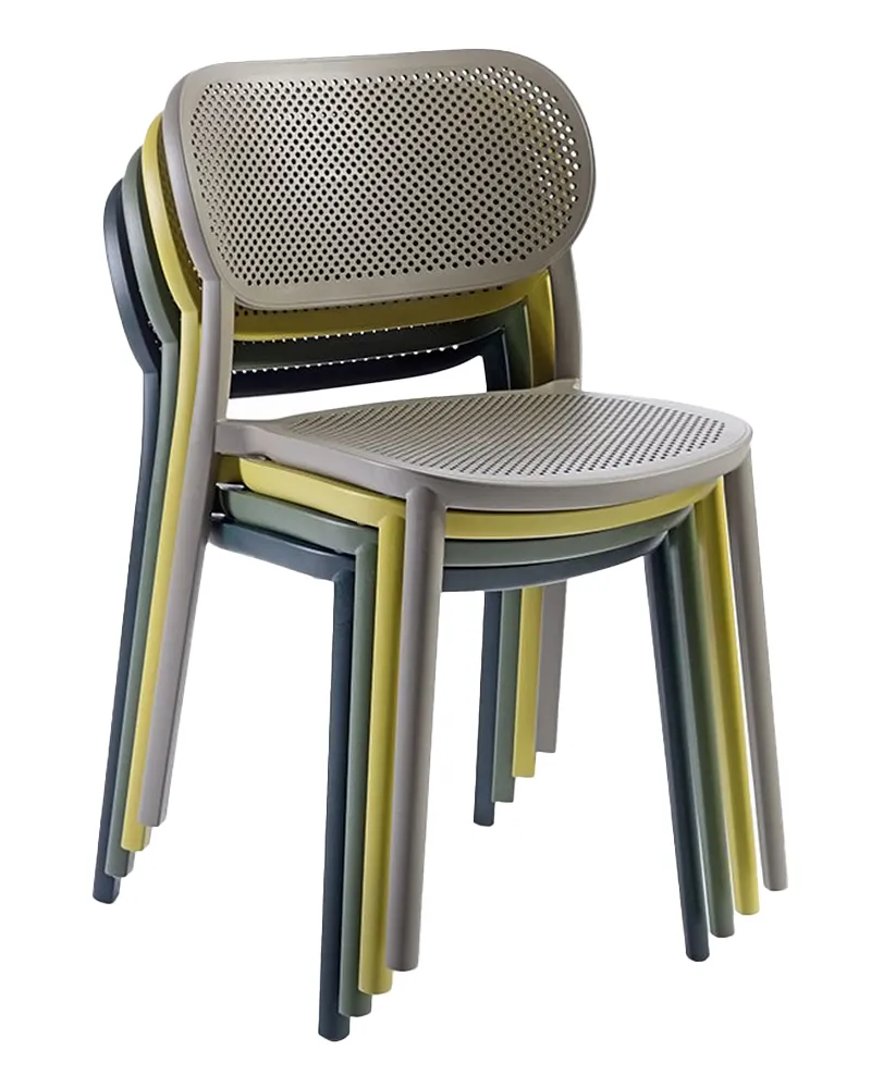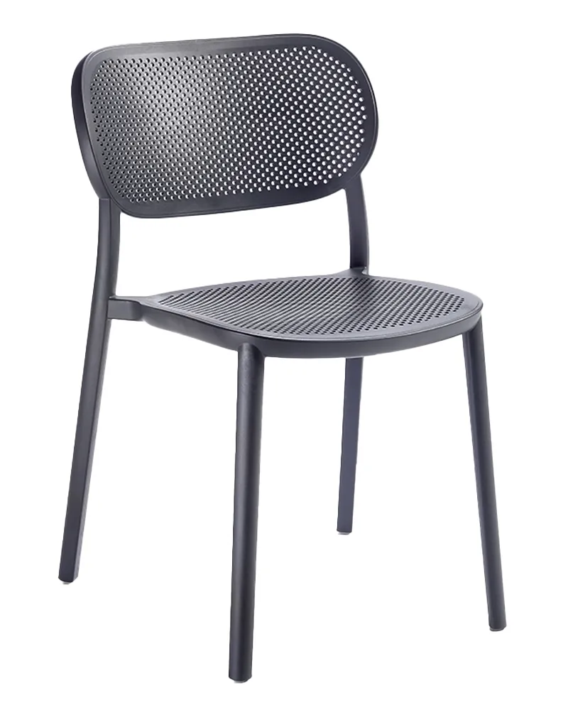 Design traforato, forme equilibrate e tecnopolimero resistente: la sedia Nuta è pensata per ambienti interni ed esterni che richiedono funzionalità e carattere. Impilabile e comoda, è disponibile in vari colori.