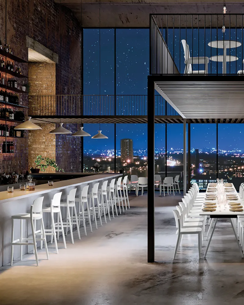 Piazza è uno sgabello minimalista e funzionale realizzato in polipropilene rinforzato con fibra di vetro. Leggero, impilabile e facile da spostare, è disponibile in diverse colorazioni per adattarsi a bar, cucine professionali e spazi contract moderni. Una soluzione pratica e resistente per interni ed esterni.