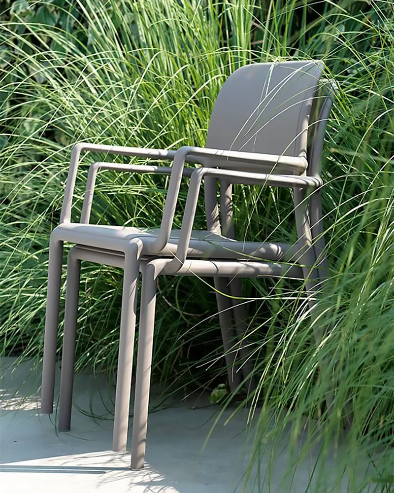 Con braccioli integrati e struttura in tecnopolimero, la poltrona Stella combina comfort e leggerezza. La scocca continua con finitura opaca è trattata anti-UV per garantire durata anche all’esterno. Pratica, impilabile e facile da spostare, è ideale per bar, terrazze o lounge.