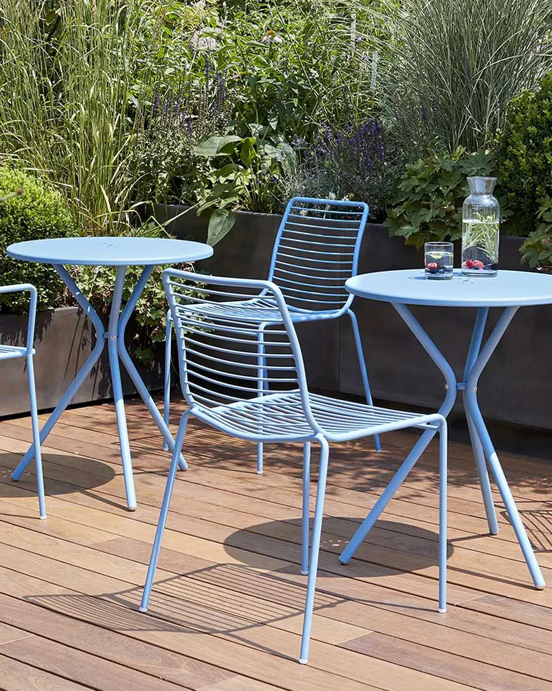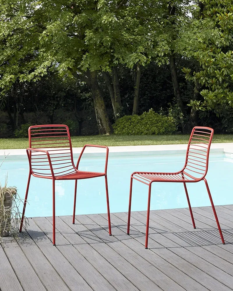 La sedia Summer è pensata per ambienti estivi e dinamici. Struttura in acciaio zincato verniciato e linee leggere la rendono ideale per terrazze, giardini o dehors. Colorata, impilabile e pratica, è una seduta che unisce estetica e funzionalità.