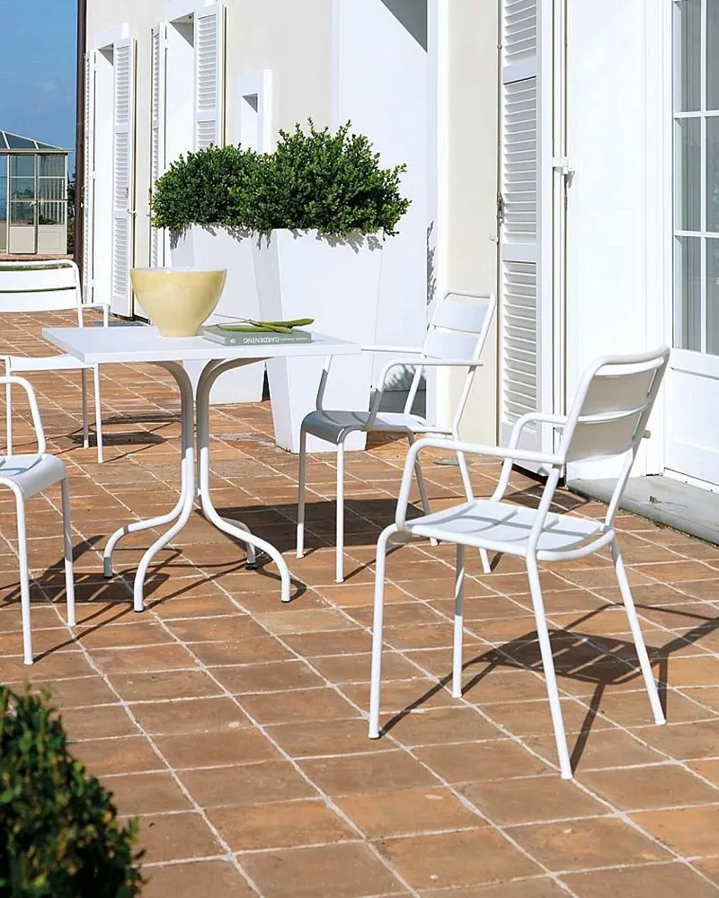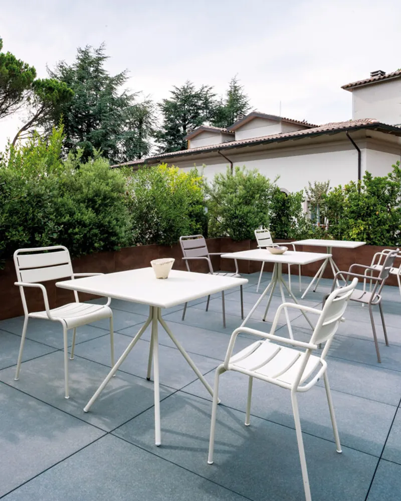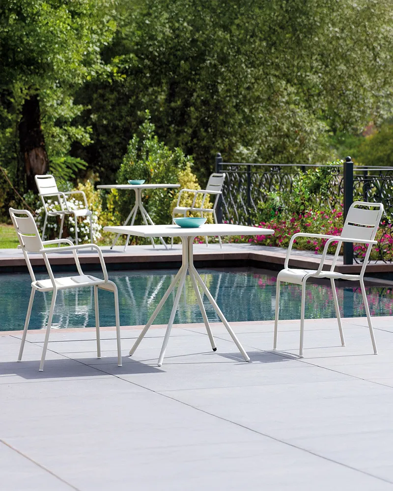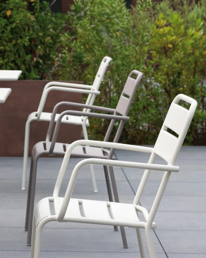 Elegante e confortevole, la poltrona Twist con braccioli unisce dettagli retrò a una struttura attuale in metallo. Impilabile e resistente, è perfetta per ambienti curati che uniscono stile classico e funzionalità contemporanea. Perfetta per spazi outdoor.
