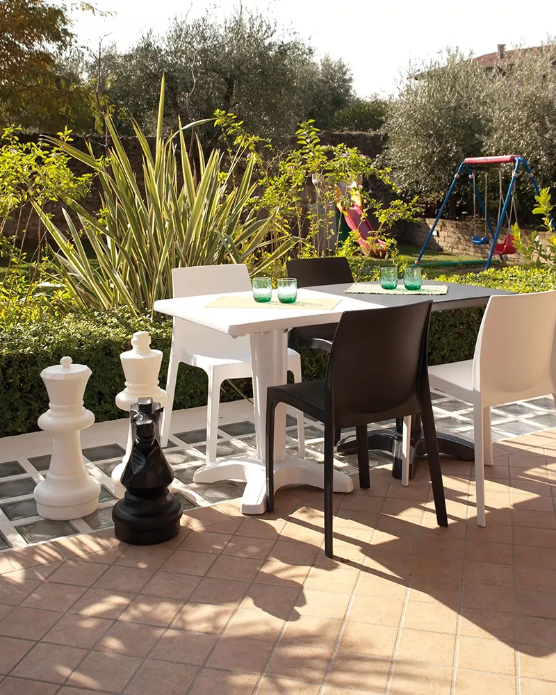 Il tavolo Vand è una soluzione intelligente per spazi ridotti come balconi, terrazze e dehors compatti. Realizzato in polipropilene, è dotato di piano ribaltabile e gamba zavorrabile, garantendo stabilità e facilità di riposizionamento. È perfetto per uso outdoor e contract.
