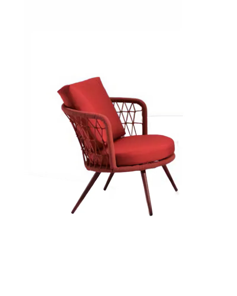 La poltrona Vega combina un’estetica sofisticata con materiali adatti all’uso esterno. La struttura in metallo verniciato assicura resistenza alle intemperie, mentre l’intreccio in corda per seduta e schienale conferisce un tocco artigianale e accogliente. Pensata per l’arredo di dehors, lounge e ambienti contract, Vega è ideale per creare spazi eleganti e confortevoli sia indoor che outdoor.