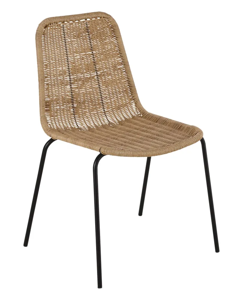 Versatile e resistente, la sedia Vibe è realizzata con struttura in metallo verniciato nero e seduta in rattan polipropilenico. Adatta per l’outdoor grazie alla sua resistenza agli agenti atmosferici, è impilabile e perfetta per ambienti dal gusto moderno.