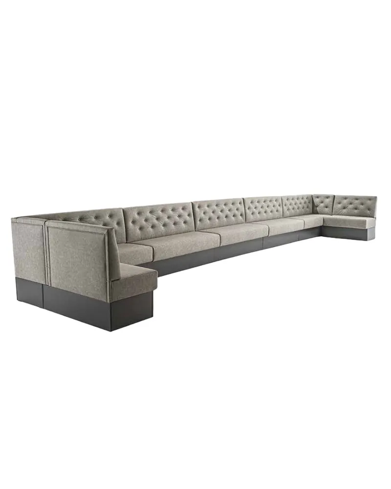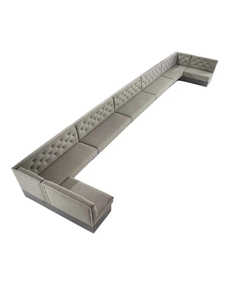 Wimbi è un divano pensato per composizioni angolari, può essere personalizzato in base alla pianta dell’ambiente, da comunicare in fase d’ordine. La struttura è in metallo e legno, solida e duratura, mentre il rivestimento – disponibile in ecopelle, velluto o Fast Clean – è rifinito anche sul retro per un’estetica curata a 360°. Lo schienale è impreziosito da una trapuntatura con bottoni, che dona un fascino classico e accogliente al divano.